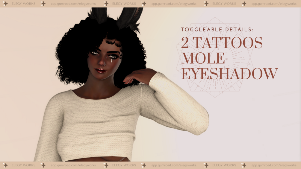 Tattoos, eyeshadow, beauty mark, and face paint are toggleable